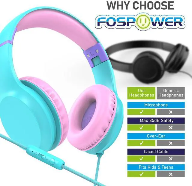 FosPower’s over the ear stereo headsets for kids are premium built headphones with a built-in inline microphone and 3.5mm aux cable. This makes this headset perfect for listening to music, games or online learning. A handy audio controller is also included on the aux cable, allowing you to control the volume, play and pause songs, and even allows you to pick up and hang up calls. Be in full control.