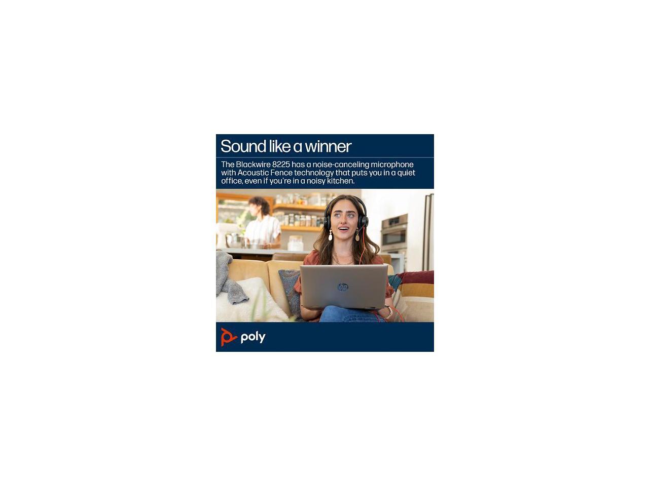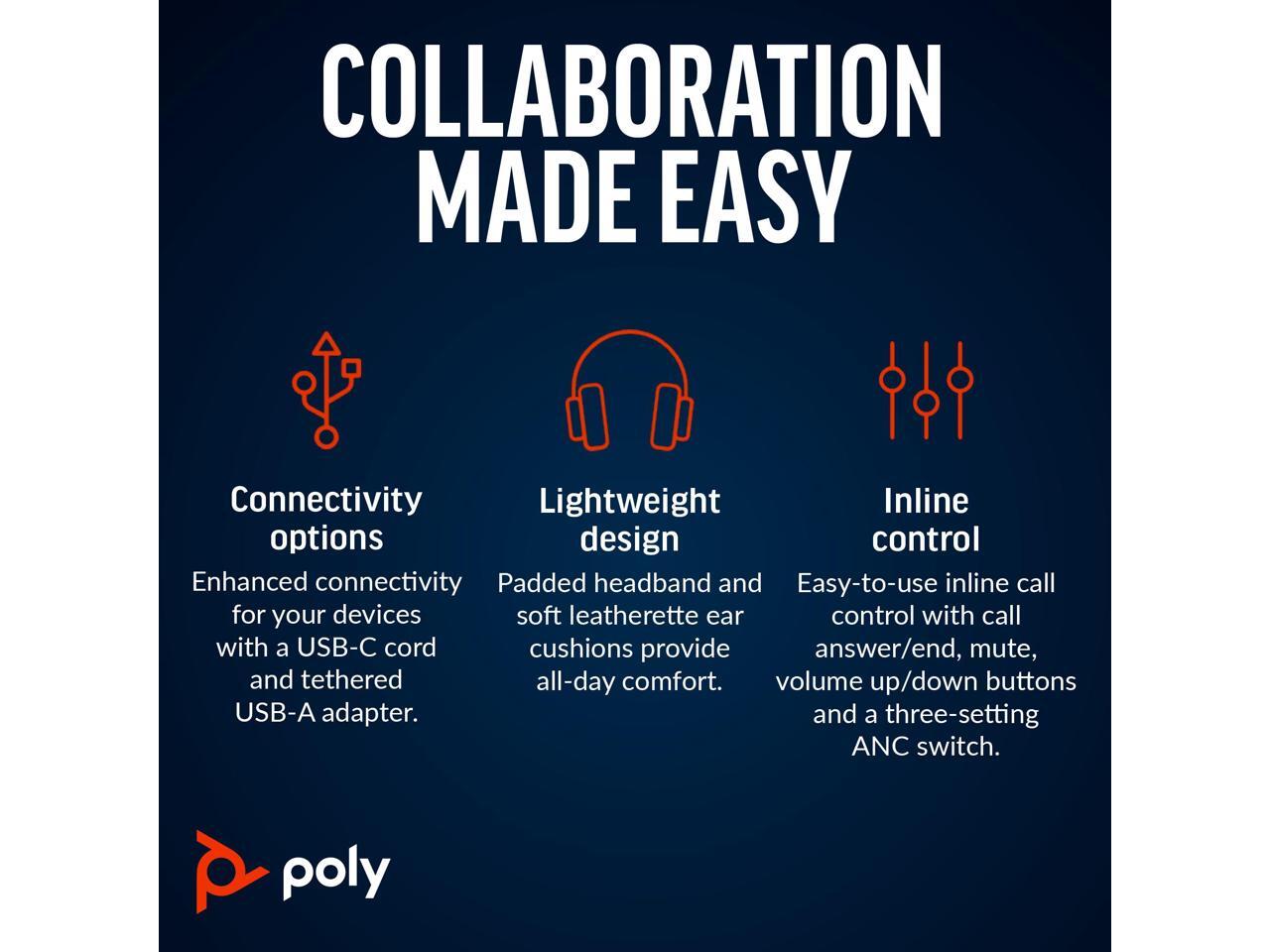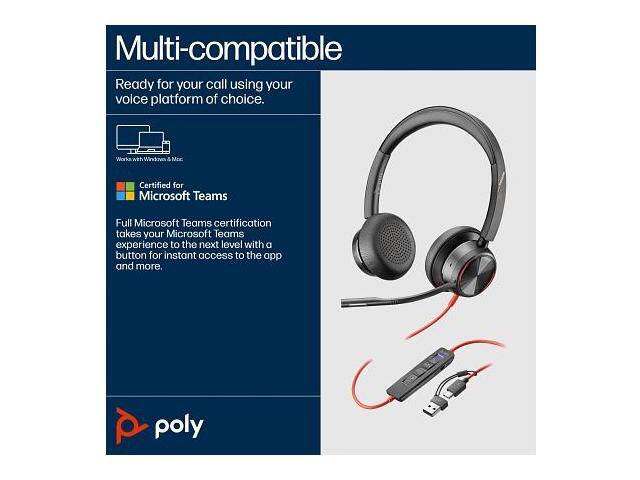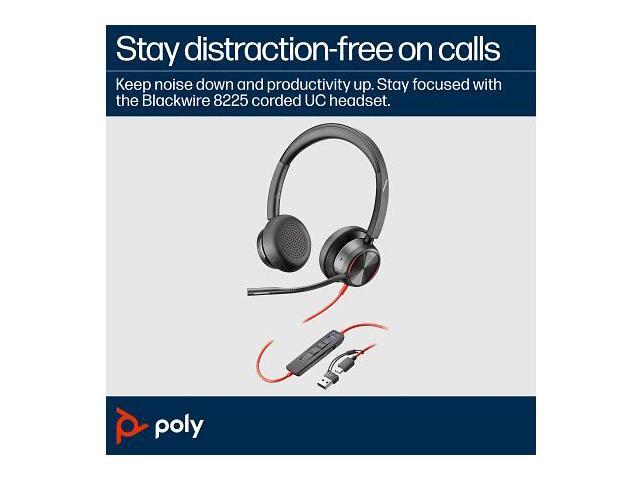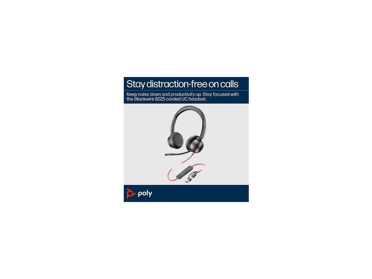 Poly Blackwire 8225 Stereo Microsoft Teams Certified USB-C Headset + USB-C/A Adapter - Microsoft Teams Certification - Stereo - USB Type C - Wired - 32 Ohm - On-ear - Binaural - Ear-cup - 7.10 ft Cabl