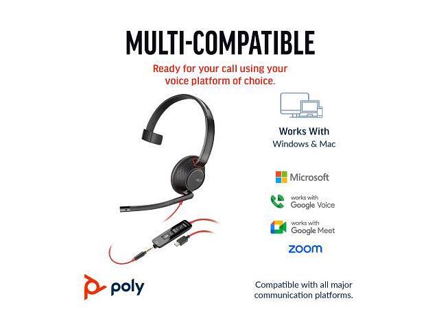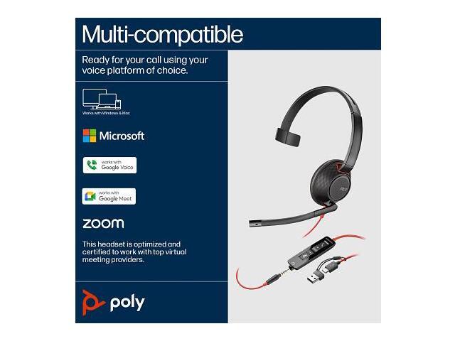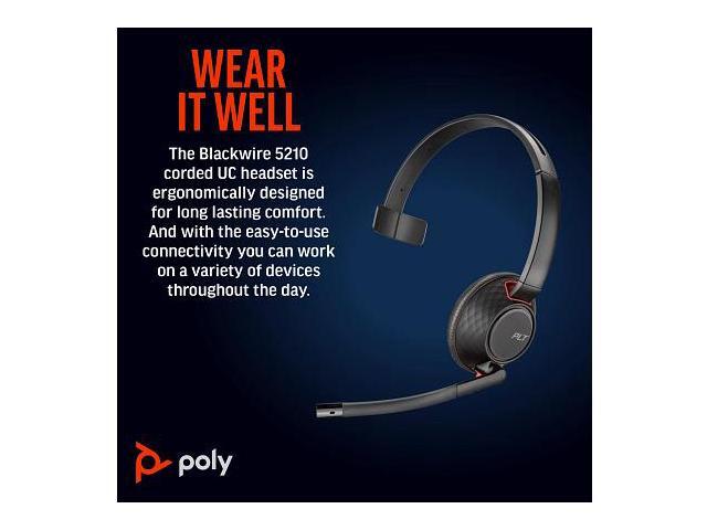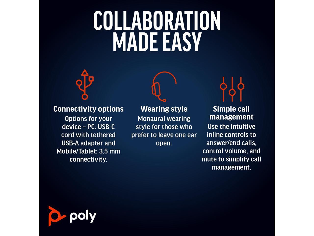 Poly Blackwire 5210 Monaural USB-C Headset + 3.5mm Plug + USB-C/A Adapter - Microsoft Teams Certification - Mono - USB Type C, Mini-phone (3.5mm) - Wired - 32 Ohm - On-ear - Monaural - Ear-cup - 7.10