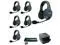 The Eartec EVADE EVX6D is a full-duplex wireless intercom system suitable for facilitating communication among six people for light industrial applications. This set includes one dual-ear master headset for the team leader and five dual-ear remote headsets. All the technology necessary for operating the intercom system, including the battery, has been built into one of the headset's earcupseliminating the need for wires or a bodypack. The headsets link automatically for transmission in the 2.4 GHz spectrum at a maximum range up to 1148', and a base station is not required.