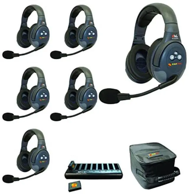 Eartec EVADE EVX6D Light-Industrial Full-Duplex Wireless Intercom System with 6 Dual-Ear Headsets (2.4 GHz)