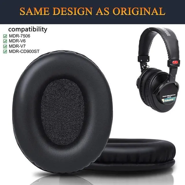 Earpads Replacement for Sony MDR-7506 MDR-V6 MDR-V7 MDR-CD900ST Monitor Headphones, Ear Pads Cushions with Softer Protein Leather, High-Density Foam - Black