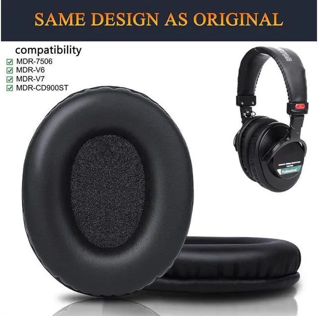 Original Earpads for Sony MDR-7506 MDR-V6 MDR-V7 MDR-CD900ST Monitor Headphones, Ear Pads Cushions with Softer Protein Leather, High-Density Foam - Black