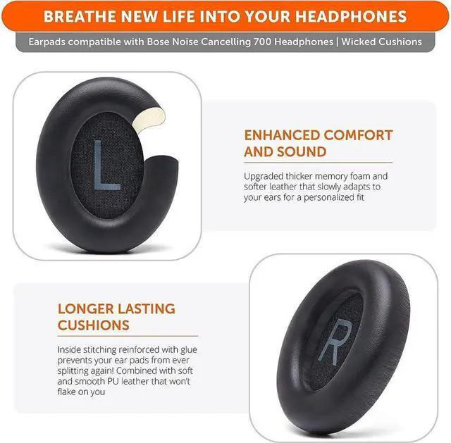 Rugged Durability: The inside seams on this replacement ear cushion kit for Bose 700 are made with added stitching reinforced with glue, to prevent your cushions from splitting and increase their lifespan.