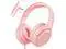 Kids Headphones with Microphone Foldable Stereo Tangle-Free 3.5 mm Jack Wired Cord On-Ear Headset for Children/Teens/Boys/Girls/Smartphones/School/Kindle/Airplane Travel/Plane/Tablet (Pink)