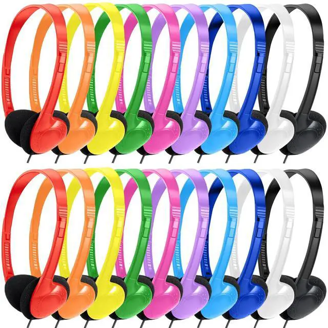 10 Colorful Headphones in Bulk,Individually Packaged and Sealed,wired kids headphones for schools classrooms or families