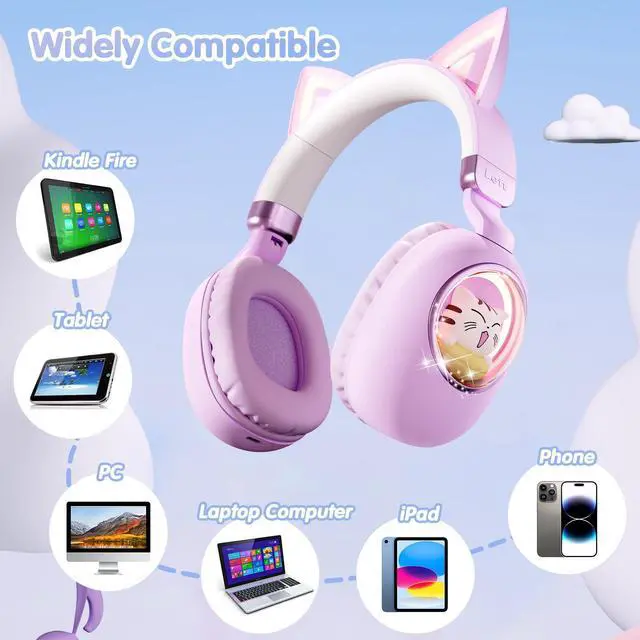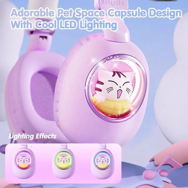 ADORABLE SPACE CAPSULE DESIGN - Featuring a playful space capsule design and vibrant RGB lighting, these cat headphones for kids are perfect for kids who love fun and stylish accessories. The eye-catching lights add an extra touch of excitement, making them a hit for any occasion!