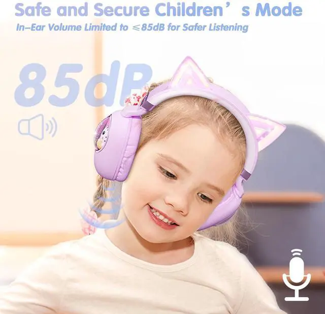 SAFE LISTENING with CHILD MODE - Protect young ears with our built-in Child Mode, limiting volume to a safe 85dB. The kid-friendly materials are free from BPA and heavy metals, making these kids bluetooth headphones as safe as they are fun!