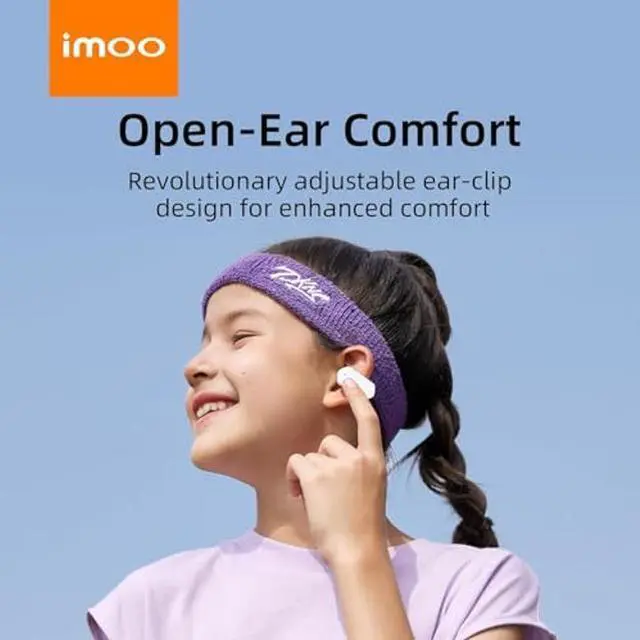 IMOO E5 Open Earbuds, Wireless Headset Mic Noise Cancelling, Bluetooth Sports Earphones, Clip on Earbuds for Comfort, Up to 30 Hours of Battery Life(White)