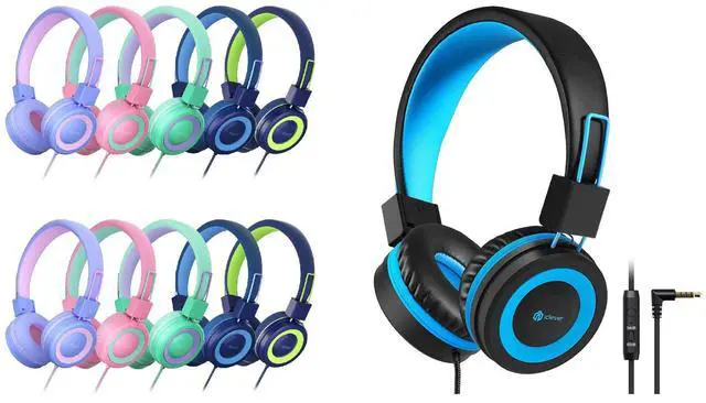 iClever HS14 Kids Headphones for School Bundles, Tangle Free, 3.5 mm Jack, HD Stereo, Folable Kids Headphones with Cord for Classroom/Student/Tablets/Laptop