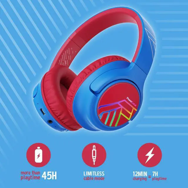 [(Triple Volume Limiting Modes)] - Safe volume limited kids wireless headphones which guarantee a safe and controlled listening experience. You can trust that PowerLocus Bobo headset will protect their delicate ears during any journey and provide them with unlimited joy. 74dB toddler mode, 85 dB study mode and 94dB travel mode will entertain them responsibly.