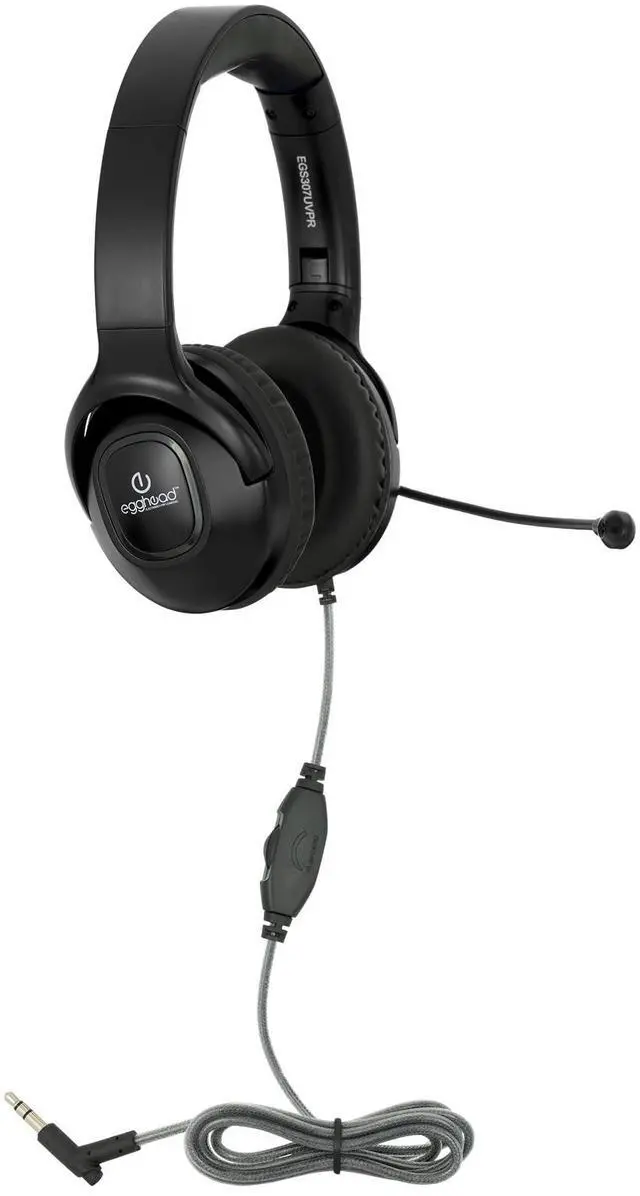 Egghead (r) Premium Foldable Headset with Leatherette Ear Cushions, Adjustable Padded Headband, 360deg Pivoting Uni-Directional Microphone, and 3.5 mm Slim Barrel Plug, Pack of 10