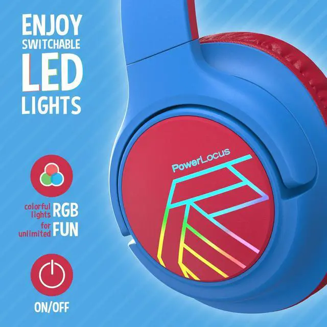 PowerLocus Kids Wireless Headphones, Bluetooth Kids Headphones LED Lights Over Ear with 74/85/94dB Volume Limited, 45H Playtime, Built-in Mic, Two Device Share Mode, HD Stereo for Travel/PC/Tablet