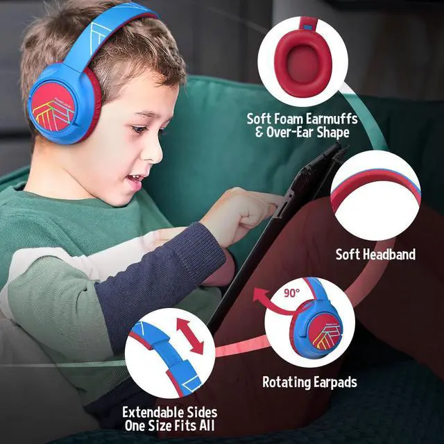• [(Share Plug and Universal Compatibility)] - Kids bluetooth headphones which you can connect instantly to any device - game consoles, phones, tablets, TV and more. Elevate your child's entertainment with the industry leading Bluetooth 5.3 and let them roam free around the house without being chained in wires. Y plug which is package supplied allows two headphones to be connected to one device.
