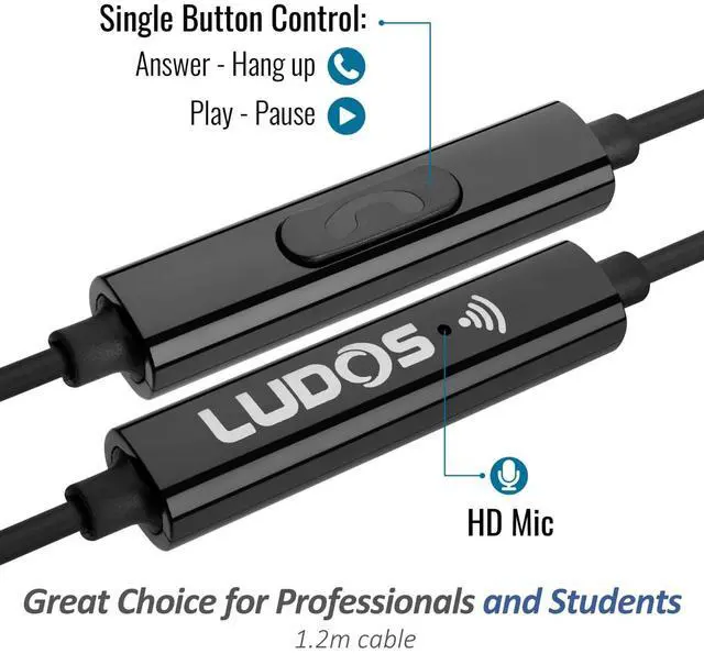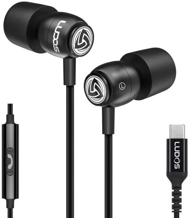 LUDOS Clamor USB C Headphones for iPhone 16 15 Pro Max Plus iPad Pro, 5 Years Warranty, USB-C Earbuds for Samsung Galaxy S24 S23 Ultra S22 S21 FE S20 A55 A54 A53, USB Type C Earphones - Black