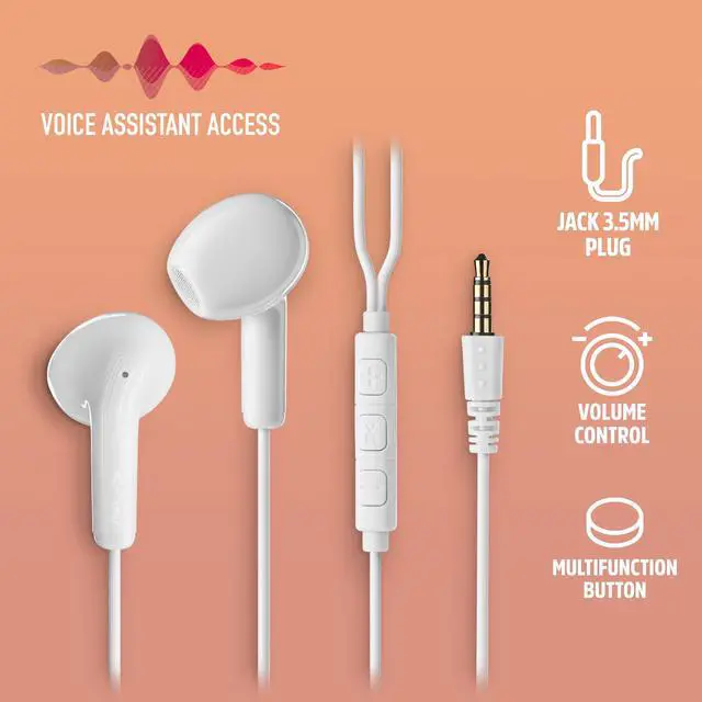 The NGS CrossKEY_TAB Flip white are in-ear wired headphones designed for everyday comfort, clear sound, and simple hands-free control. Equipped with a 3.5mm jack connection, they are compatible with various smartphones, tablets, laptops, and other devices. The built-in microphone allows you to take and end calls while keeping your phone in your pocket, offering convenience on the go.