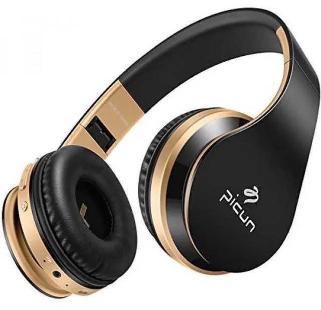 Wireless Headphones Bluetooth Headphone with Mic Hifi Stereo Bass Foldable Lightweight Headset for Computer Cell Phones TV Tablet Laptop Volume Control TF Card Wired Mode Picun - Black Gold