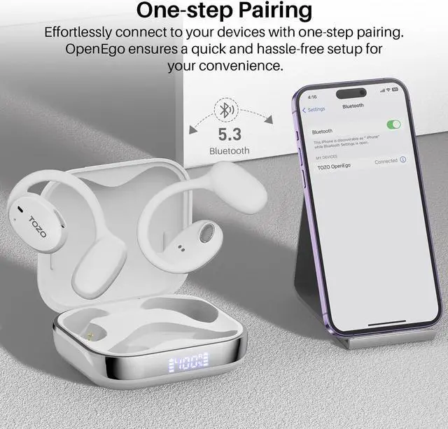 Continuously Sound Quality: TOZO OpenEgo 16.2MM -DIAMETER DRIVERS provide high-fidelity audio with about 30% larger motor coil than conventional type, delivering translucent highs and immersive lows. TOZO OrigX Acoustics goes even deeper into the details of the sound, bringing a more breathtaking listening experience.