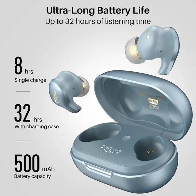 [LDAC HD Audio-decoding] TOZO Golden X1 is equipped with LDAC technology, which can stream 24bit/96khz music (also known as high-resolution audio music) via Bluetooth at speeds up to 990 kbit/s, which can transmit data more than 3 times compared to the ordinary Bluetooth SBC.