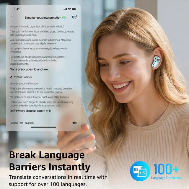 [AI Translation] Connect the Earbuds to your phone via Bluetooth and use the TOZO APP for real-time translation. Break down language barriers with real-time face-to-face translation in over 100+ languages.