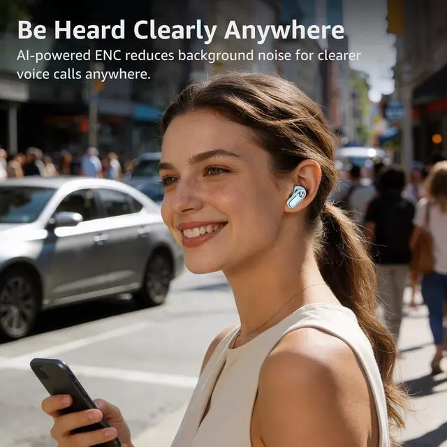 [4 Mics AI Call Noise Cancellation] 4 built-in mics and an AI algorithm work together to pick up your voice and eliminate ambient noise so that you can enjoy clear call wherever you go.