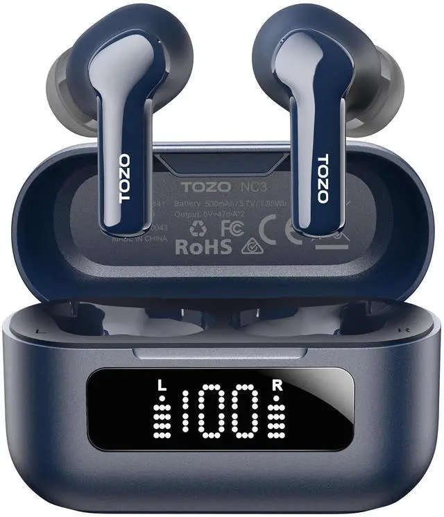 [Extended 55-Hour Playtime] With ANC off, TOZO NC3 offers 13 hours of listening time on a single charge, which can be extended to 55 hours with the charging case. With ANC on, TOZO NC3 offers 9.5 hours of playtime, and 40 hours with the charging case via fully charged via USB A to C cable. That's enough playtime to enjoy up to 800+ songs or attend 55 meetings. And when you're short on time, a 10-minute charge provides 1 hour of playtime.