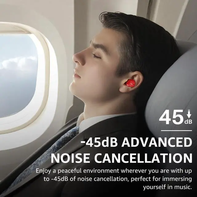 [Hybrid Active Noise Cancelling] With a maximum noise reduction depth of 45dB, Immerse yourself in your music without any distractions from the outside world and focus on what matters most - your music.