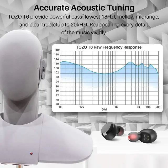 [Bluetooth 5.3 ] Adopt the advanced Bluetooth 5.3 technology. TOZO T6 supports HSP, HFP, A2DP, and AVRCP, which greatly improve the transmission speed and provide you with a low-latency listening experience.