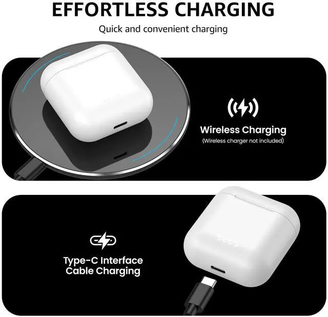 [One Step Pairing] Pick up 2 headsets from the charging case and they will connect each other automatically, then only one step easily enter the mobile phone Bluetooth setting to pair the earbuds.