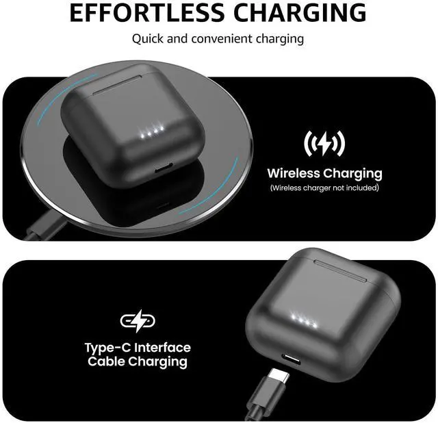 [One Step Pairing] Pick up 2 headsets from the charging case and they will connect each other automatically, then only one step easily enter the mobile phone Bluetooth setting to pair the earbuds.
