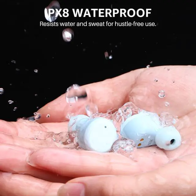 [IPX8 Waterproof] Earbuds and charging case inner Nano-coating make it possible to waterproof for 1 meter deep for 30 minutes. It is suitable for sports to prevent water. Ideal for sweating it out at the gym. Earbuds and cases even can be washed by water and soap.