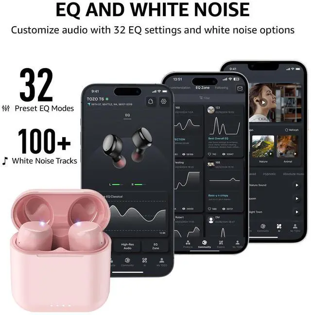 [Bluetooth 5.3 ] Adopt the advanced Bluetooth 5.3 technology. TOZO T6 supports HSP, HFP, A2DP, and AVRCP, which greatly improve the transmission speed and provide you with a low-latency listening experience.