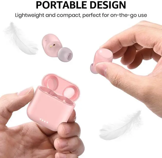 [One Step Pairing] Pick up 2 headsets from the charging case and they will connect each other automatically, then only one step easily enter the mobile phone Bluetooth setting to pair the earbuds.