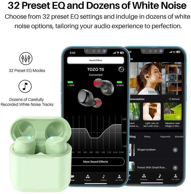 [Bluetooth 5.3 ] Adopt the advanced Bluetooth 5.3 technology. TOZO T6 supports HSP, HFP, A2DP, and AVRCP, which greatly improve the transmission speed and provide you with a low-latency listening experience.