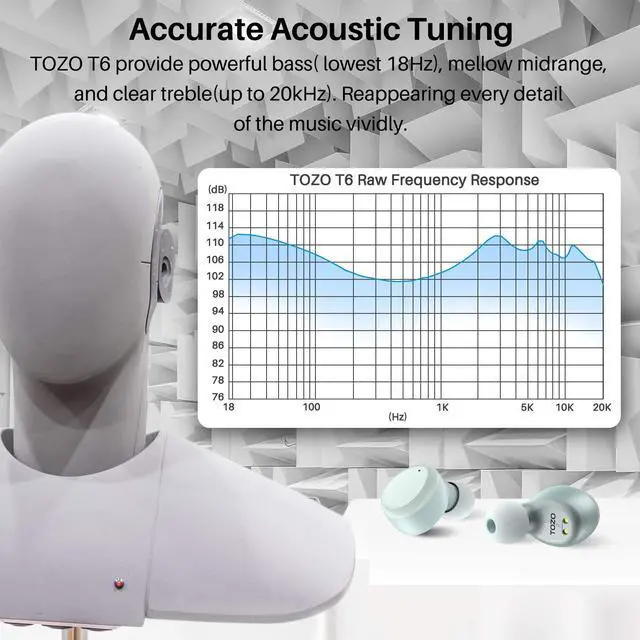 [Bluetooth 5.3 ] Adopt the advanced Bluetooth 5.3 technology. TOZO T6 supports HSP, HFP, A2DP, and AVRCP, which greatly improve the transmission speed and provide you with a low-latency listening experience.