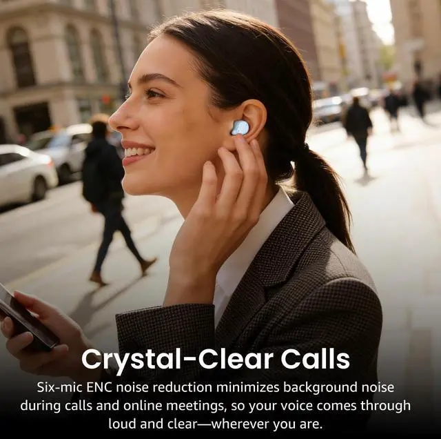 [6 Microphone Call & ENC Ambient Noise Reduction] Enjoy crystal-clear call quality even in noisy environments, as the earphones actively filter out background sounds. Stay connected and enjoy seamless communication wherever you go.