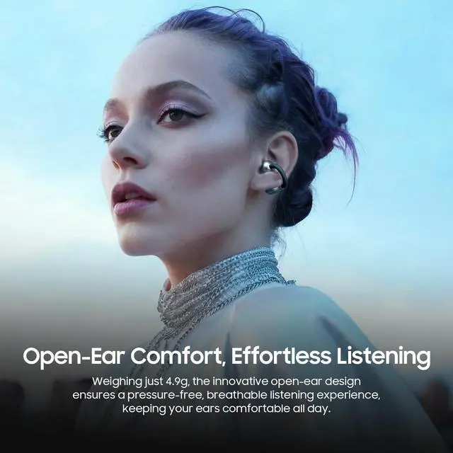Open-Ear Comfort, Effortless Listening -- Weighing just 4.9 g, the innovative open-ear design ensures a pressure-free, breathable listening experience, keeping your ears comfortable all day.