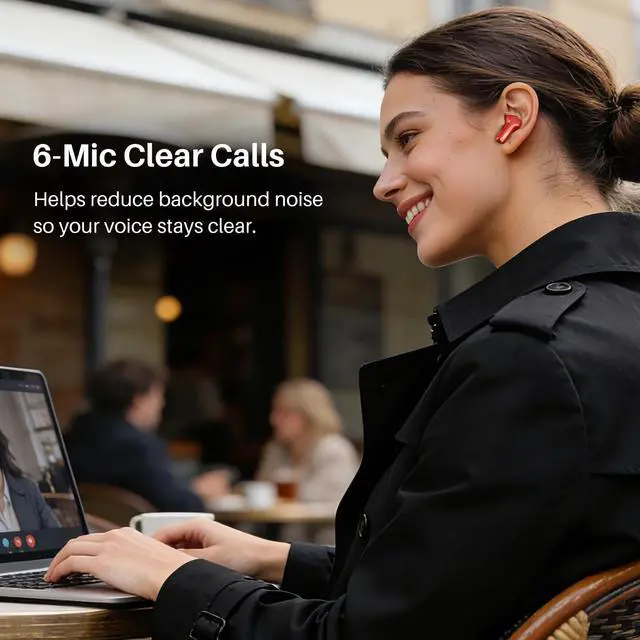 [6 Microphone Call & ENC Ambient Noise Reduction] Built-in 6 microphones detect ambient noise in real time and select the appropriate noise reduction level for your ears.
