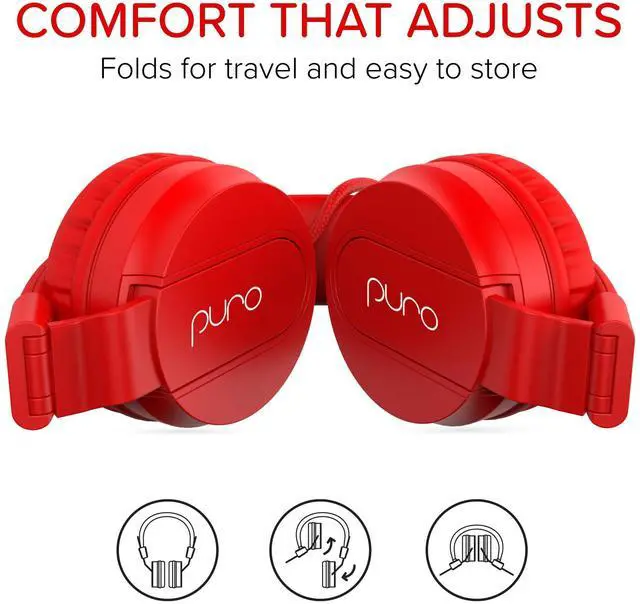 Puro Sound Labs PuroBasic Volume Limiting Wired Headphones for Kids, Foldable & Adjustable Headband w/Microphone, Compatible with Smartphones, Tablets and PC's -Red