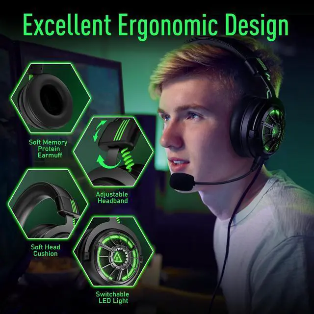 Designed for all-day comfort. With soft memory protein earmuffs on both side, you won't feel any discomfort while wearing this gaming headphones even for long time gaming. The headband was designed fo