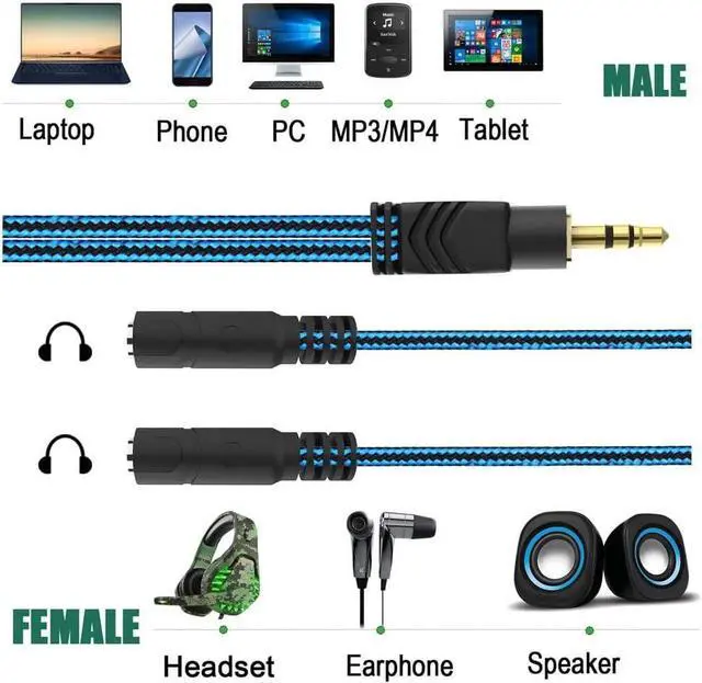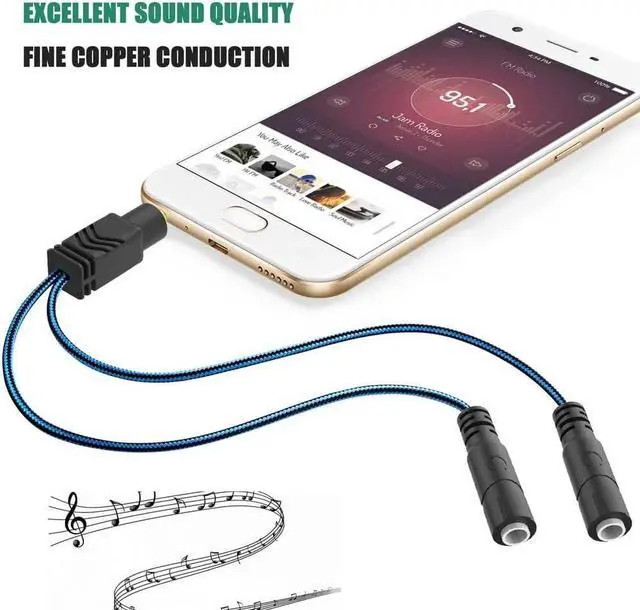 Audio Sharing: 3.5 mm Y Splitter is perfect for audio sharing. The Double Headphone Jack Adapter splits audio from one source into two outputs and allows you to use two headphones earphones or speakers simultaneously. The Dual Headphone Aux Splitter is ideal for sharing music movies video or gaming with your partner when on the plane or adding two headphones/speakers to your PC/smart TV. 1 to 2