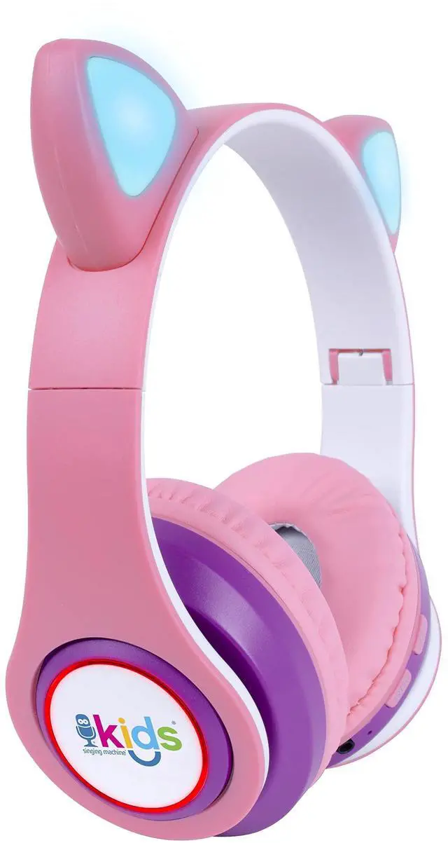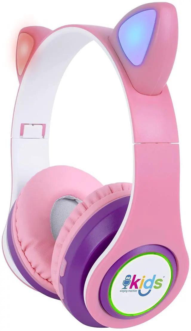 Singing Machine SMK302PP Kids Bluetooth Wireless Cat Headphones with Built-in Microphone and Rechargeable Battery, Pink