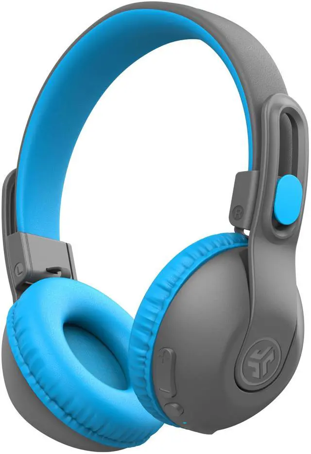 JLab JBuddies Studio 2 Wireless +Wired On-Ear Kids Headphones, Grey/Blue, 65+ Hour Battery Life, Share Mode, Volume Safe, Volume Limiter, Folding, Adjustable, Noise Isolation, with Mic