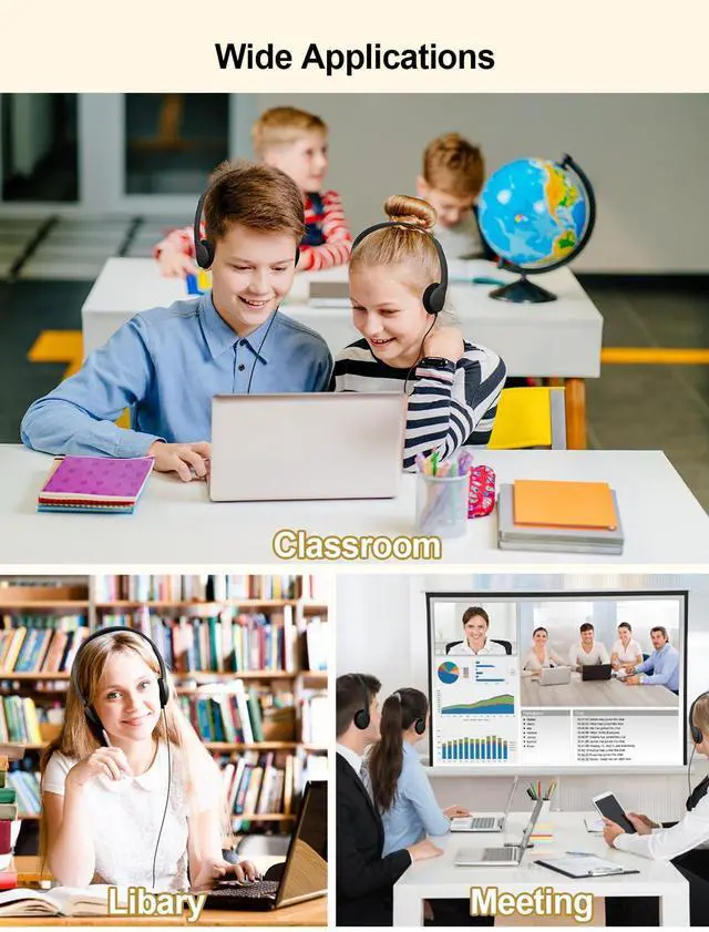 [(Fits Kids to Adults)] Adjustable headband design makes these classroom headphones suitable for a wide range of users, from kids to adults.