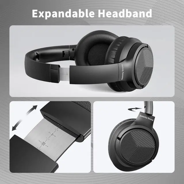 Botesty Sound Headphones Wired with Microphone, Over Ear Foldable 3.5mm Plug in Headphones with 4.9ft Tangle-Free Nylon Cord for Tablet, Laptop, MP3/4, Airplane Travel (Black)