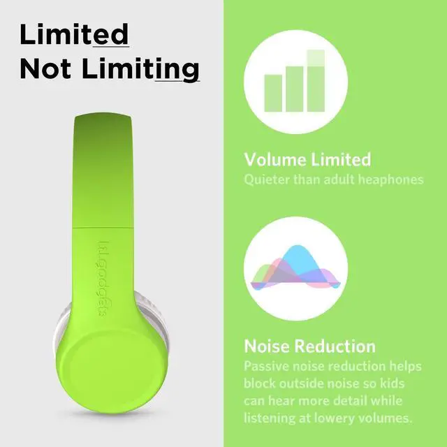 Back To School Essential: These green on-ear wired headphones, perfect for toddlers and children, feature SoftTouch padding for comfort. Ideal for Back-to-School 2025, they are lightweight and durable, making them an excellent gift for students