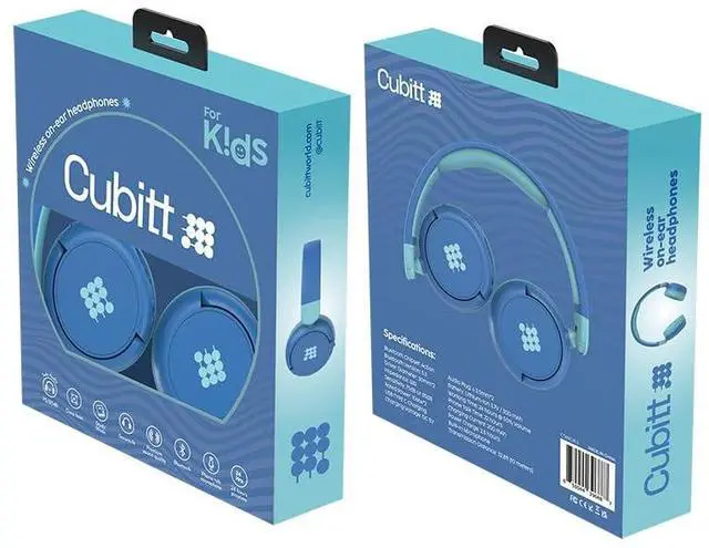 Cubitt Bluetooth Headphones for Kids, Wireless, with Premium Sound Quality, Built in Microphone, 24 Hours Playtime, Study Mode/Volume Limited and AUX Cord for iPad, Tablet, Airplane, Phone, PC