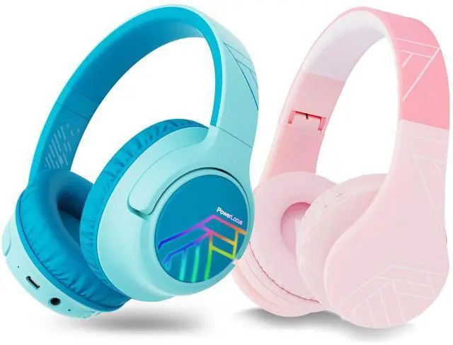 PowerLocus Bobo Kids Headphones (Blue) with P1 Kids Headphones (Pink)