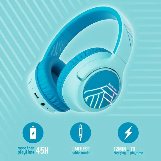 [(Triple Volume Limiting Modes)] - Safe volume limited kids wireless headphones which guarantee a safe and controlled listening experience. You can trust that PowerLocus Bobo headset will protect their delicate ears during any journey and provide them with unlimited joy. 74dB toddler mode, 85 dB study mode and 94dB travel mode will entertain them responsibly.
