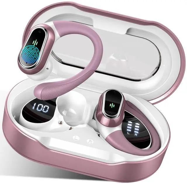 Wireless Earbuds, 2025 Bluetooth 5.4 Headphones Sport, Bluetooth Earbuds with ENC Noise Canceling Mic, 51H Stereo Wireless Headphones IP7 Waterproof with Earhooks, Dual LED Display for Workout/Run